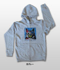 このパーカーは一部手描きです。手描きならではの風合いをお楽しみください。手作業ですので、1枚ごとに細かいレイアウトや表情、色合いが違ってきます。全く同じ物にならないことをご理解のうえ、ご注文ください。